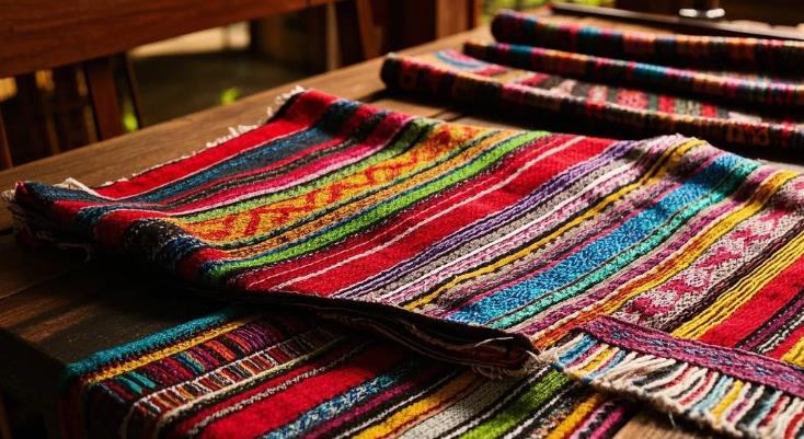 壮锦以其色彩绚丽、图案别致、结实耐用而著称。传统的花纹图案有万字纹、水波纹、云雷纹、菊花纹等,还有蝴蝶朝花、双龙抢珠、狮子滚球等20多种图案。这些图案不仅美观大方,还蕴含着丰富的文化意义。壮锦的用途非常广泛,可以制作成床毯、被面、围裙、背带、腰带、手提袋、头巾、衣边装饰等。近年来,为了适应市场需求,壮锦的设计师们不断创新,推出了数码产品保护套、化妆包、马面裙等新型产品,使得壮锦更加贴近现代生活